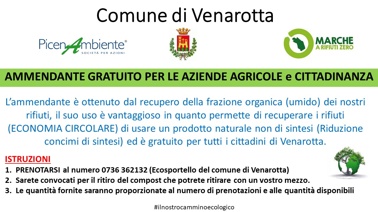 Prenotarsi al numero 0736/362132 (Ecosportello del Comune di Venarotta)